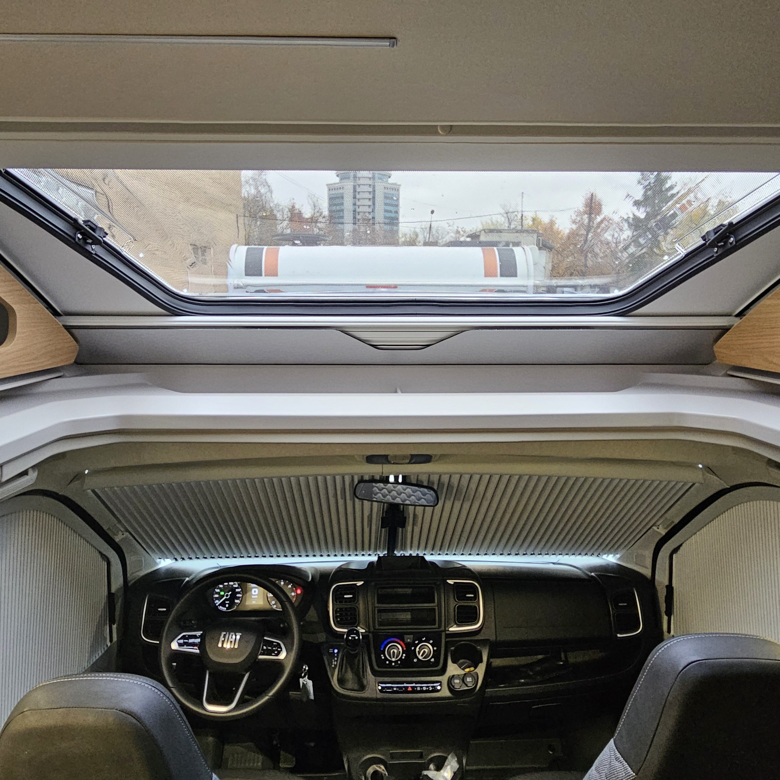 Все окна и люки с затемняющими жалюзи и москитными сетками.