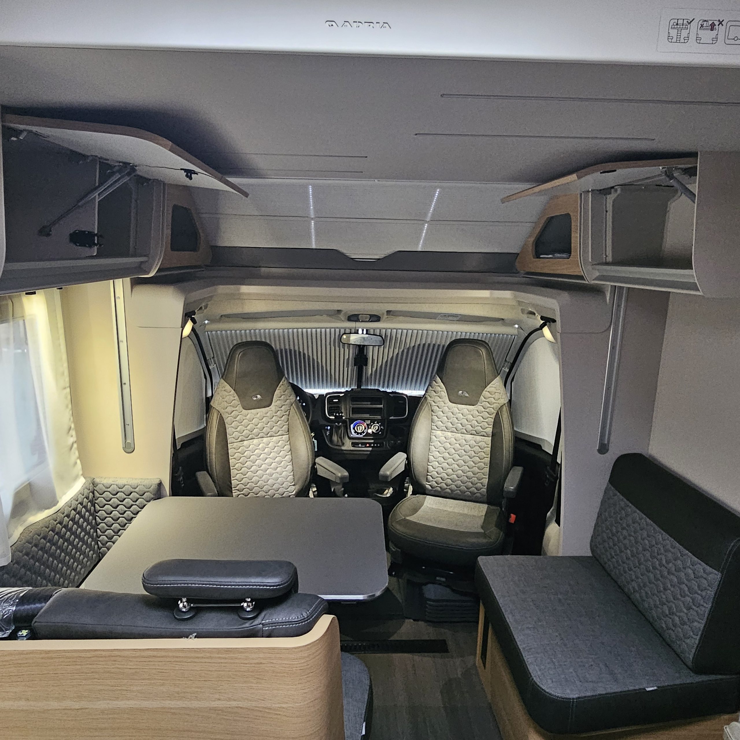 Благодаря длине 7,49 м и четырем стационарным спальным местам + 1 спальное место по центру сзади, просторным шкафам и богатому стандартному оборудованию шикарный полуинтеграл особенно подходит для семей, ориентированных на комфорт. Быть дома в дороге и чувствовать себя совершенно комфортно. Для этого и созданы автодома Adria.