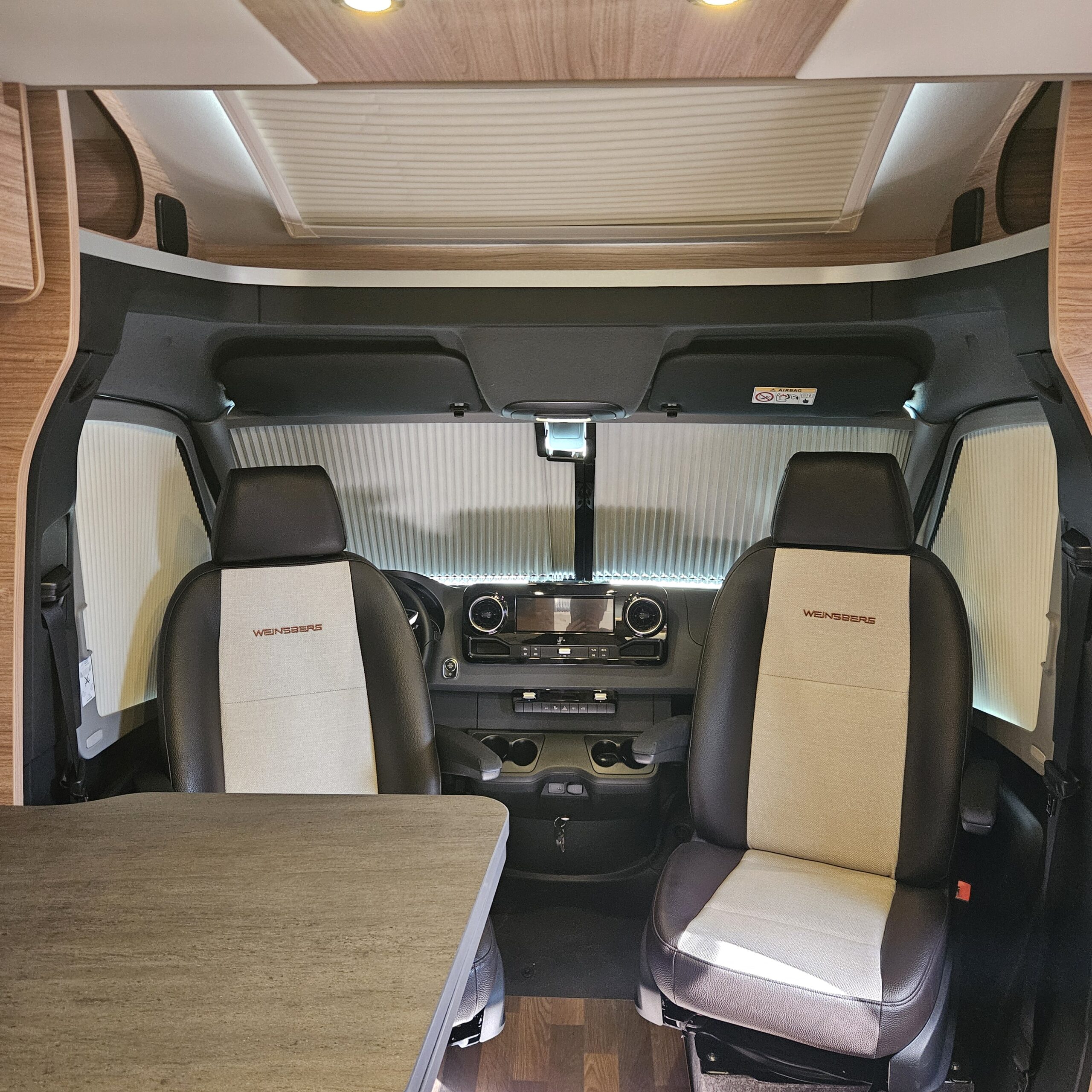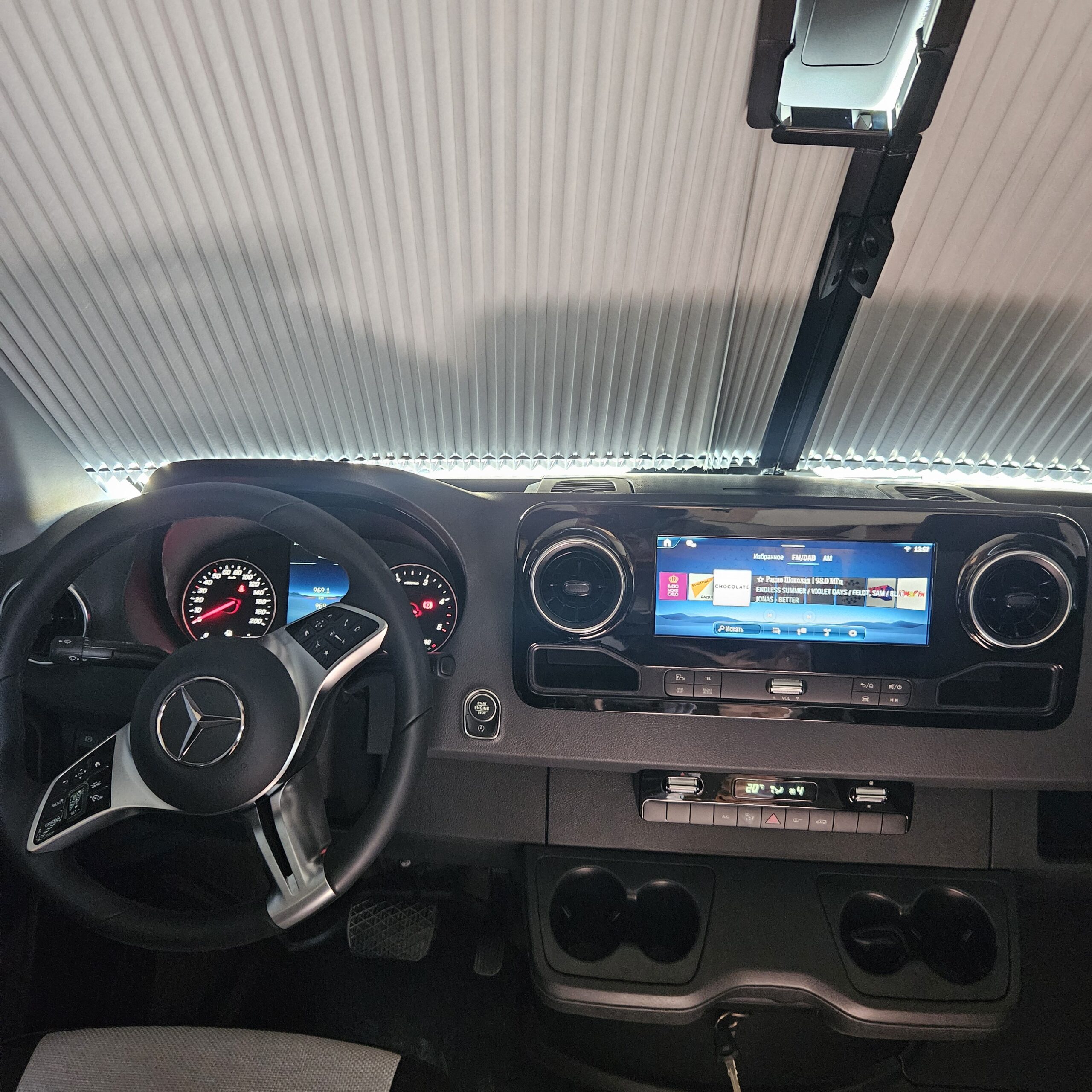 Круиз-контроль в сочетании с мультифункциональным рулём, электрический ручной тормоз, усиленная передняя ось, автоматическая коробка передач 9GTRONIC с Hold-Funktion, мультимедийная система MBUX 10,25" с навигацией, DAB+, монитор Touchscreen с камерой заднего вида, активный асситент дистанции DISTRONIC PLUS, акустический пакет Mercedes-Benz, место для беспроводной зарядки смартфона, возможность зарядки на панели приборов 2 x USB-C 5V / 1x розетка 12V, полуавтоматический кондиционер кабины водителя TEMPMATIC, а также датчик дождя.