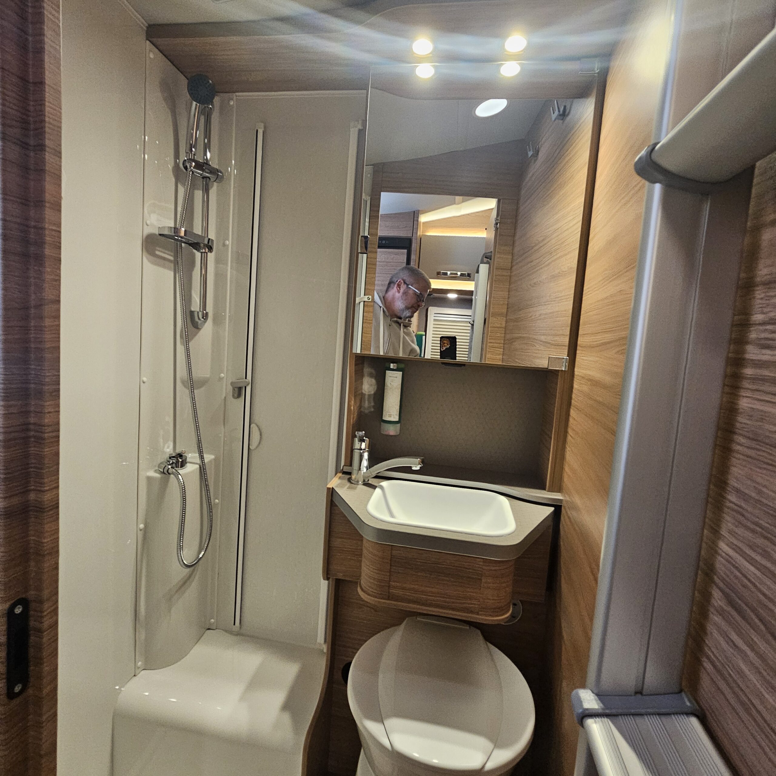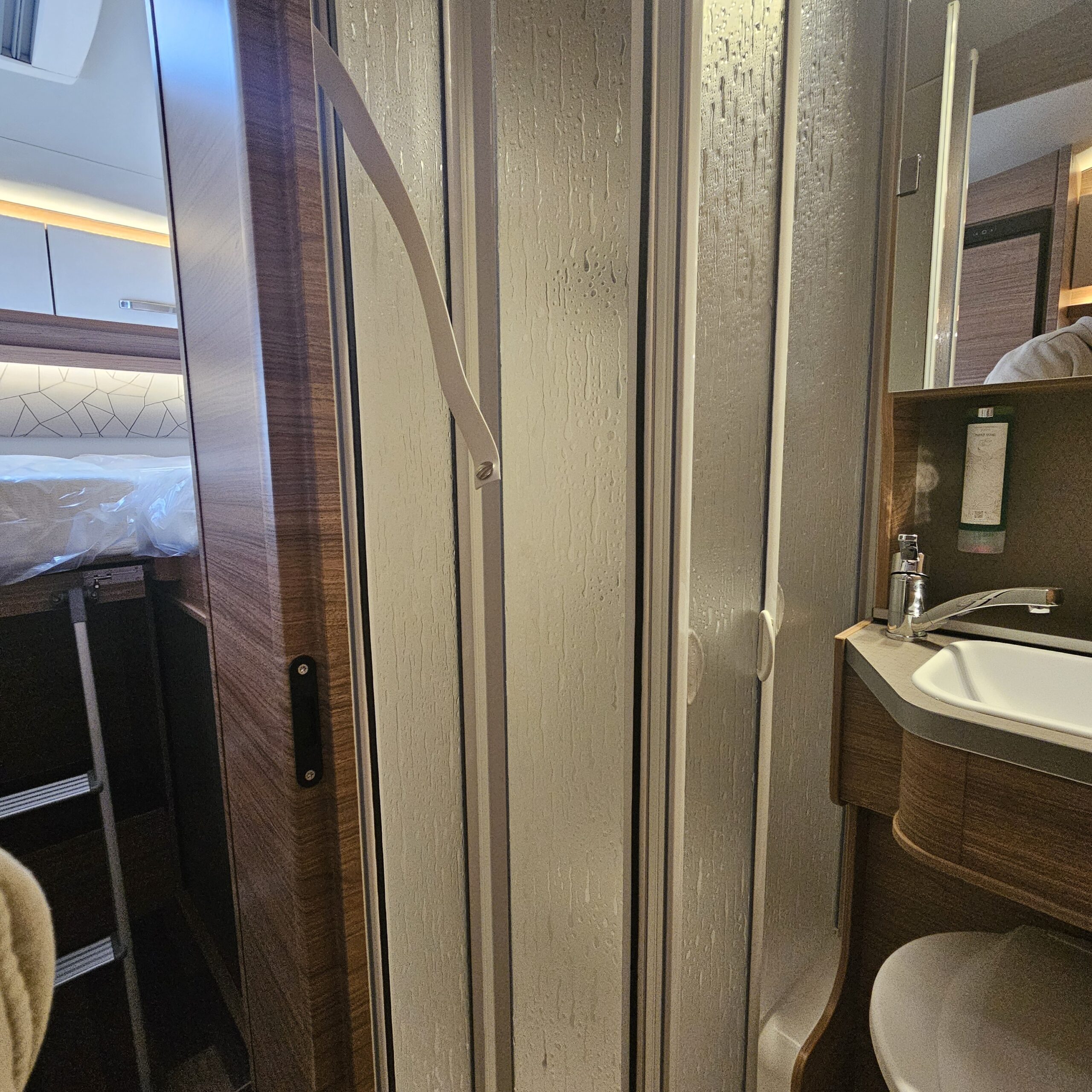 ✅Совмещённый просторный санузел с кассетным биотуалетом Dometic, отдельная душевая кабина с пластиковой перегородкой